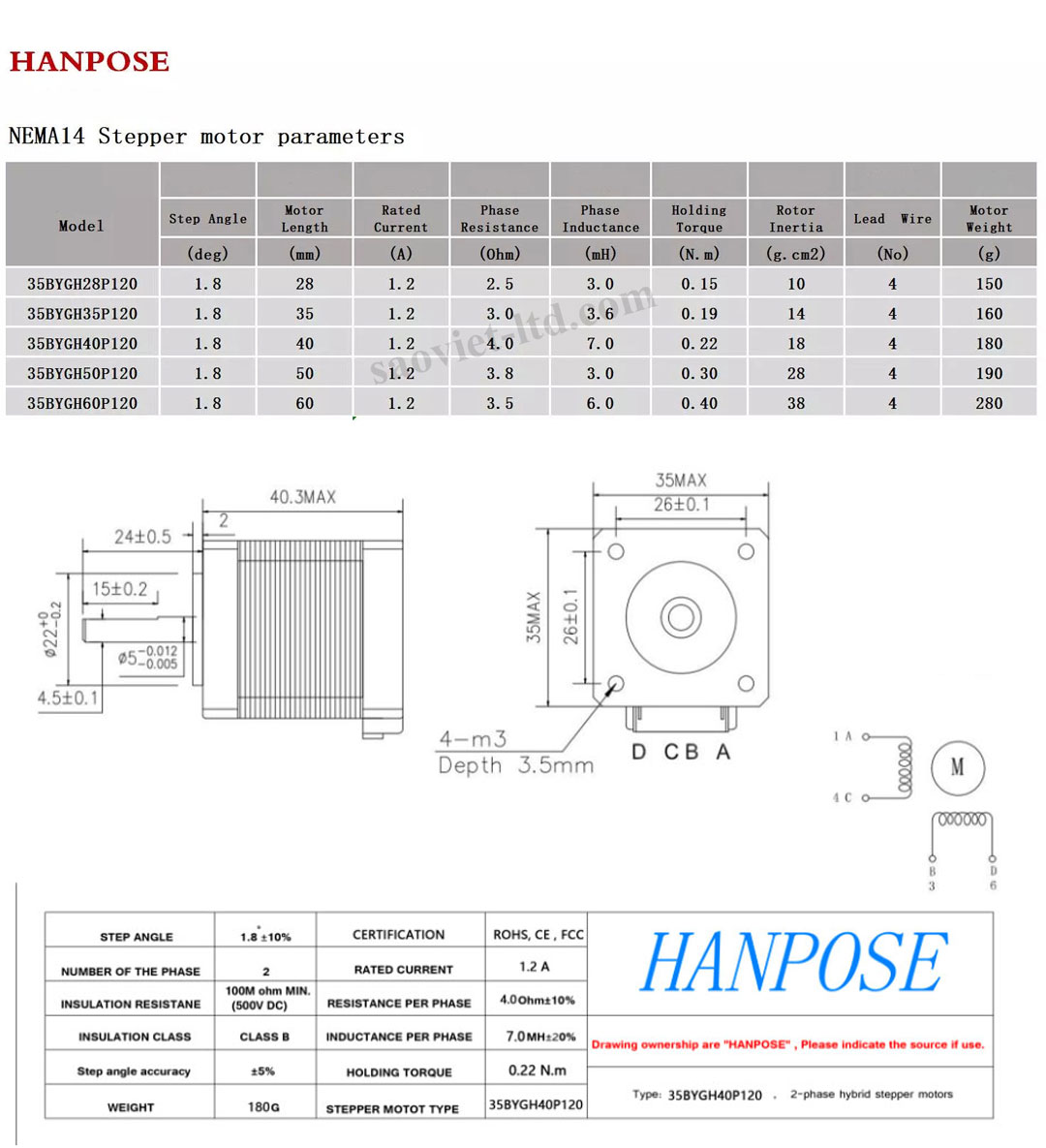 Góc bước: 1,8 °