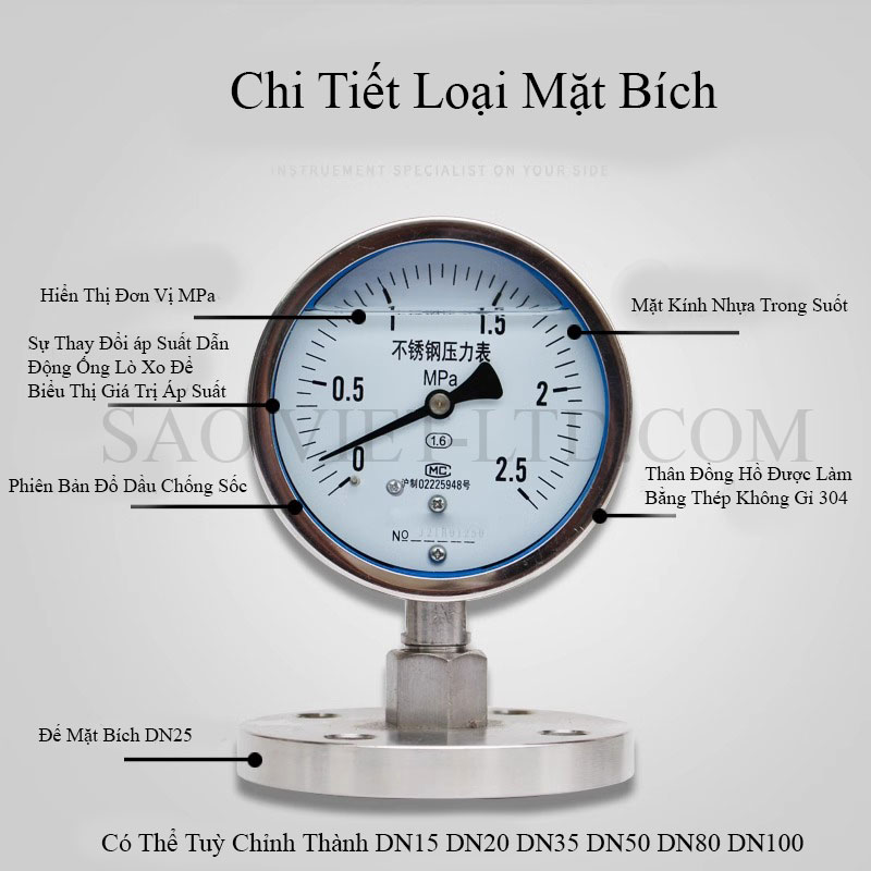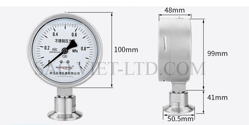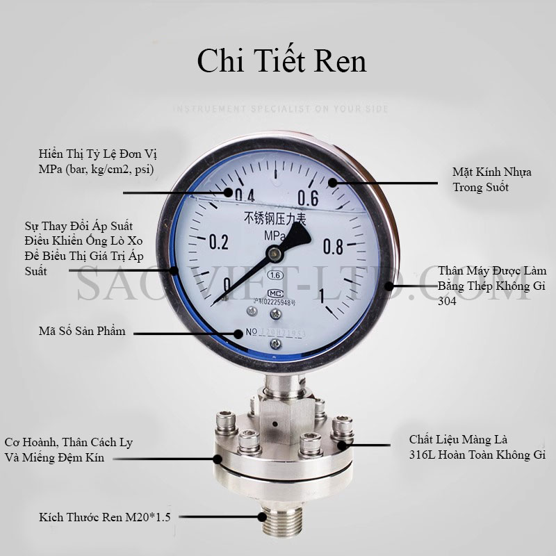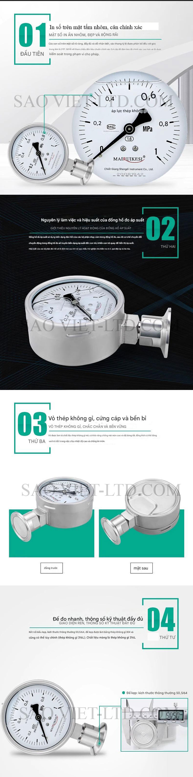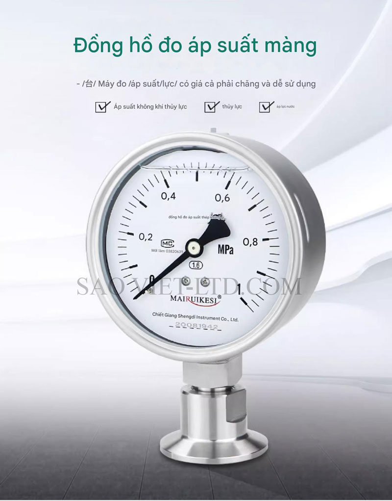 Đồng hồ đo áp suất kiểu màng inox 304 chống gỉ kiểu kẹp nhanh là một thiết bị đo áp suất chuyên dụng, được thiết kế để sử dụng trong các ngành công nghiệp thực phẩm, dược phẩm và hóa chất, nơi yêu cầu vệ sinh và an toàn cao.