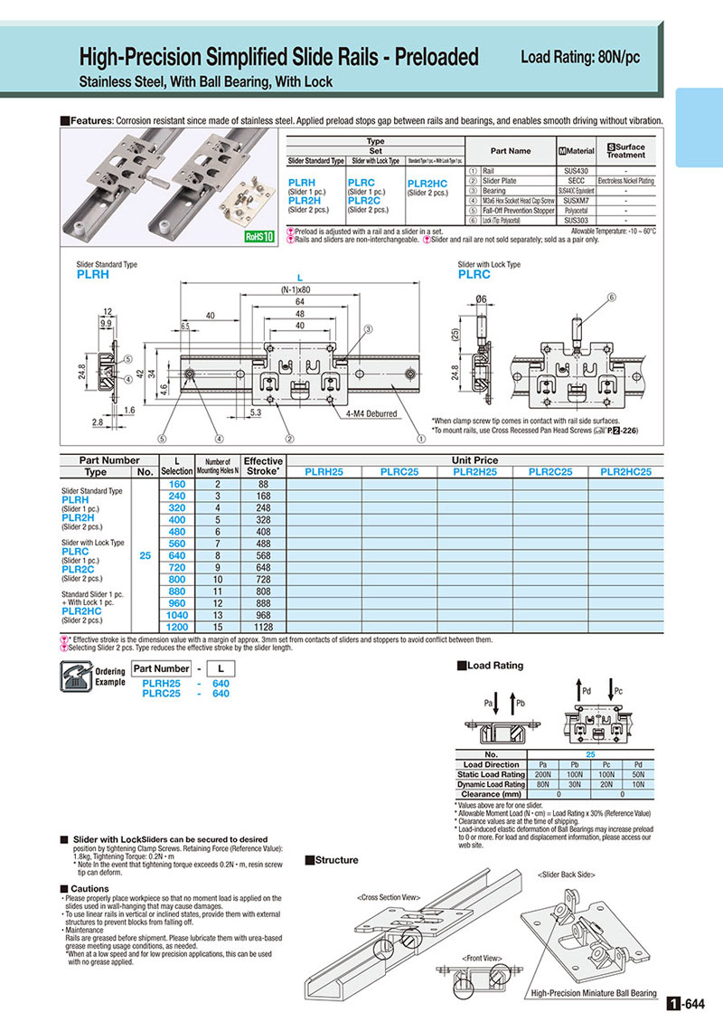 Bảng Thông Số Kỹ Thuật Đường Ray Trượt Đơn Giản Có Độ Chính Xác Cao PLR2C/ PLR2H/ PLR2HC/ PLRC/ PRLH