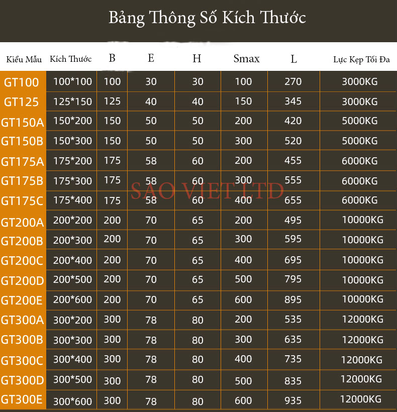 Phạm Vi Kẹp: 100/150/200/300/400/500/600/800