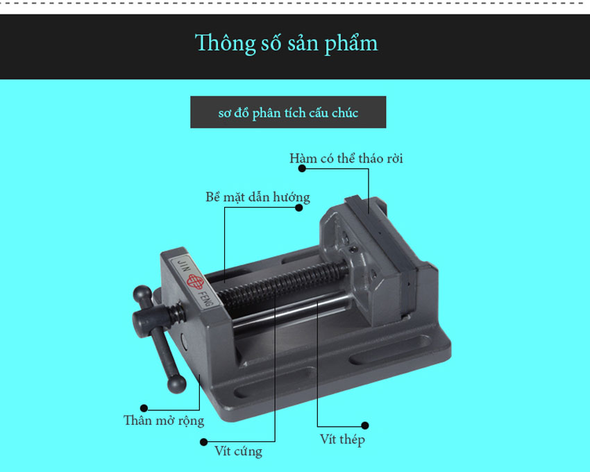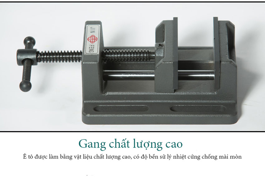 -Thân sản phẩm làm bằng gang cứng có khả năng chịu nhiệt tốt và chống gỉ sét dù tiếp xúc thường xuyên với điều kiện ẩm ướt hay bất kì thời tiết khắc nghiệt nào. Bên cạnh đó, ê tô còn có độ rắn chắc tối ưu, không bị biến dạng khi chịu lực tác động mạnh nên người dùng có thể yên tâm sử dụng trong một thời gian dài.