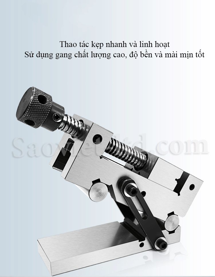– Góc nghiêng của ê tô được giữ chặt bởi 2 bu-lông, nó giữ góc ghiêng tại mỗi vị trí với độ ổn định cao.