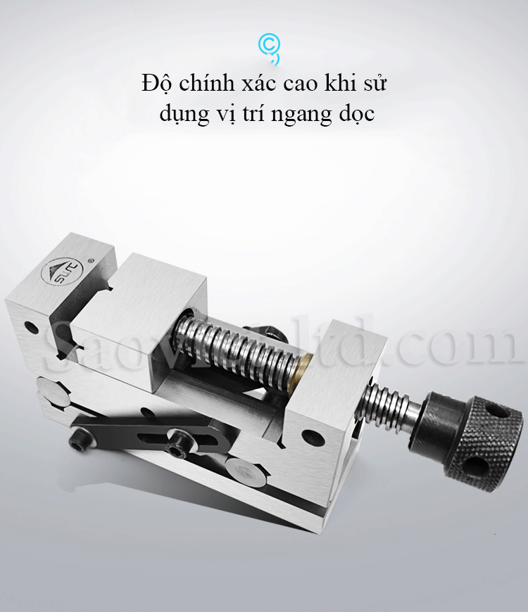 – Ê tô có thể quay tròn 360° trên đế có đĩa chia, có bu lông kẹp chắc chắn tại mỗi vị trí.