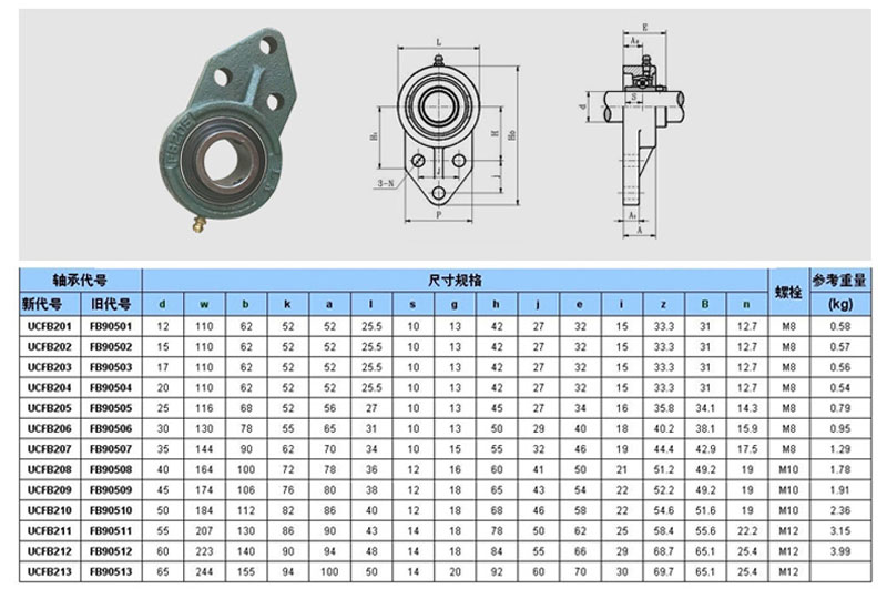 BẢNG THÔNG SỐ KỸ THUẬT GỐI ĐỠ INOX SUCFB