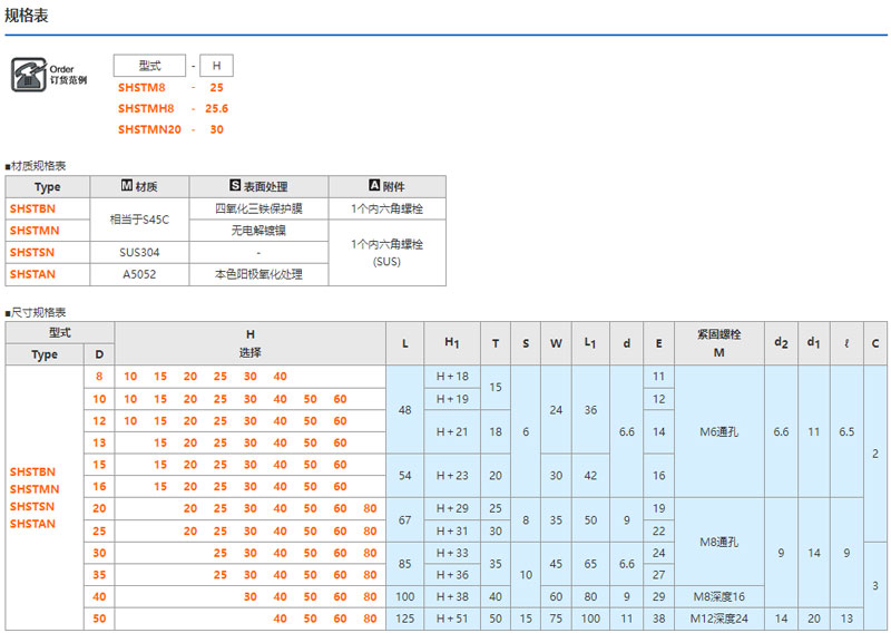 Bảng Thông Số Kỹ Thuật Gối Đỡ Trục Khe Chữ T SHSTBN/SHSTMN/SHSTAN