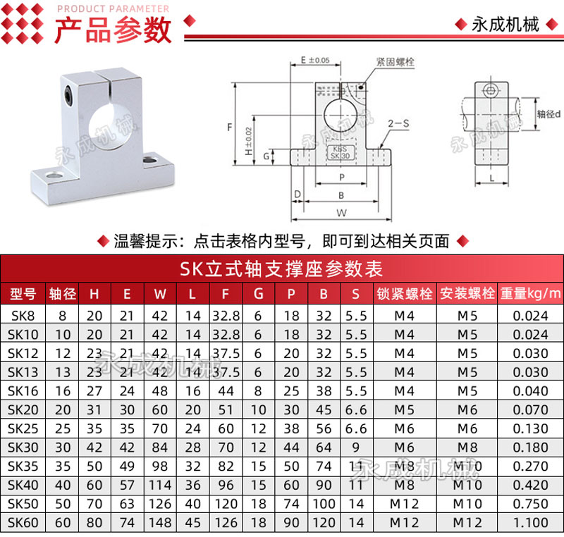 Bảng Thông Số Kỹ Thuật Gối Đỡ Trục LM Loại SK