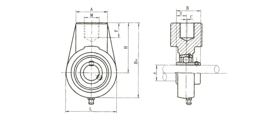 là một dạng bi cầu được bao bọc bởi một lớp vỏ hợp kim gang chịu lực,rất bền,khó nứt khi bị va đập mạnh.Khả năng chịu tải của gối đỡ vòng bi khá lớn nhưng tốc độ quay thì lại bị giới hạn.