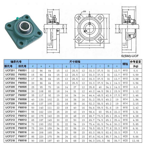 BẢNG THÔNG SỐ GỐI ĐỠ NSK UCF203, UCF204, UCF205, UCF206, UCF207, UCF208, UCF209, UCF210, UCF211