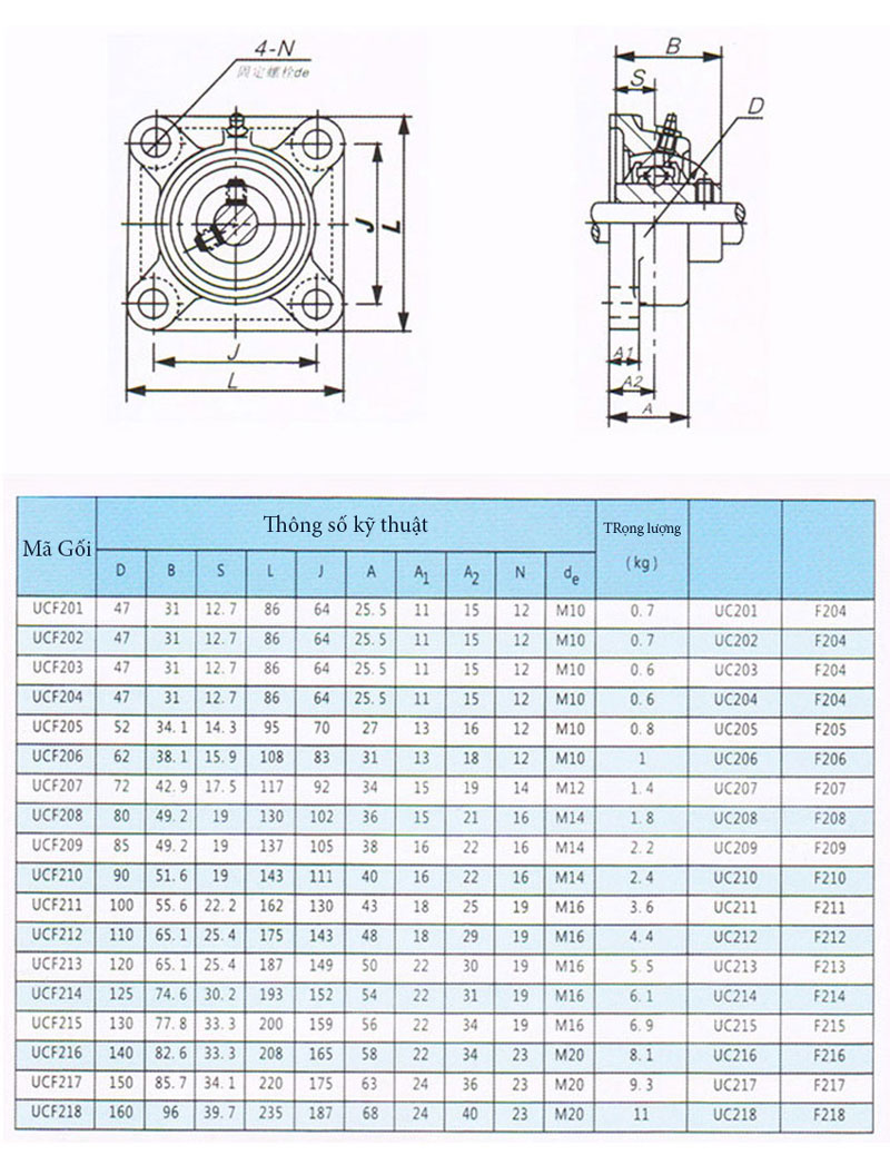Vật liệu: Gối đỡ Vỏ Nhựa + Bi UC inox 304