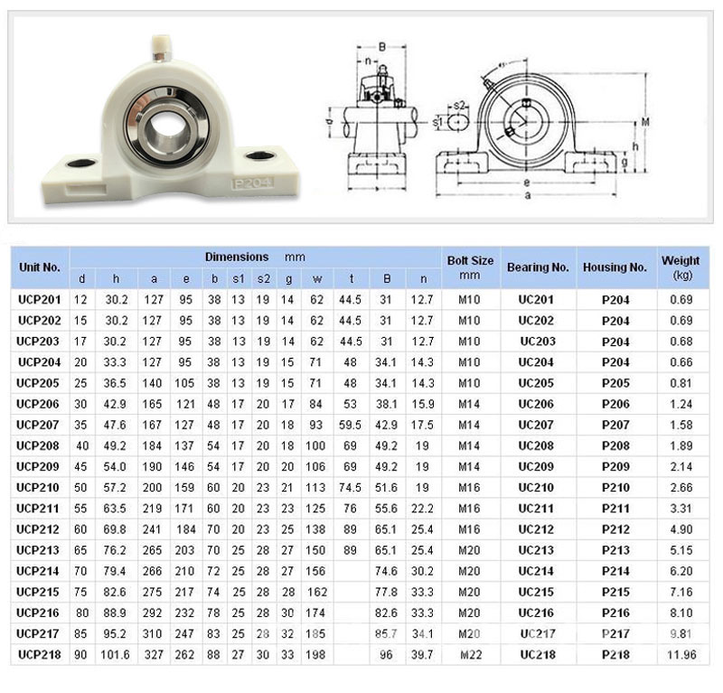 Model: gối đỡ UCP vỏ nhựa + Bi UC inox 304