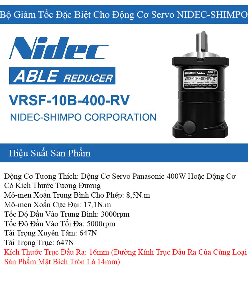 Bảng Thông Số Kỹ Thuật Hộp Số Nidec VRSF-10B-400-RV