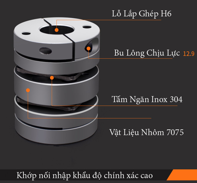 Khớp nối màng cho động cơ secvo: Vòng có khả năng lựa theo sai lệch vị trí của các trục để truyền chuyển động. Đệm đàn hồi có tác dụng bù sai lệch của trục.