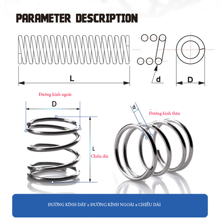 Lò xo nén còn được gọi là một loại lò xo bằng thép không gỉ, cuộn thành nhiều vòng. Tùy yêu cầu lực đẩy mà độ dày mỏng hay số vòng là khác nhau.