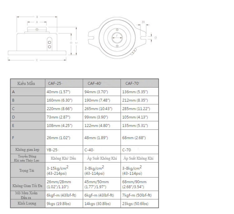 Mâm Cặp Tháo Lắp Bằng Khí Nén CAF