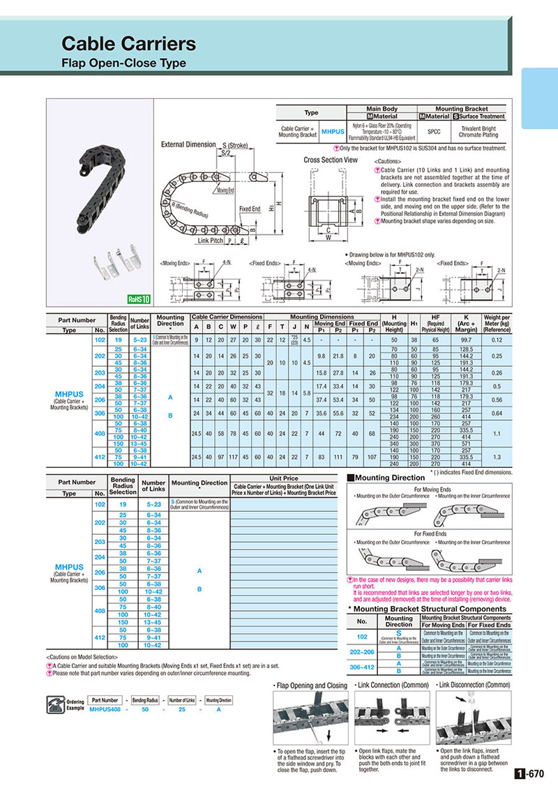 Bảng Thông Số Kỹ Thuật Máng Cáp Đi Dây Điện Loại Có Thể Đóng Mở MHPUS206-38-13/14/15/16/17/18/1920/2122/23-A B