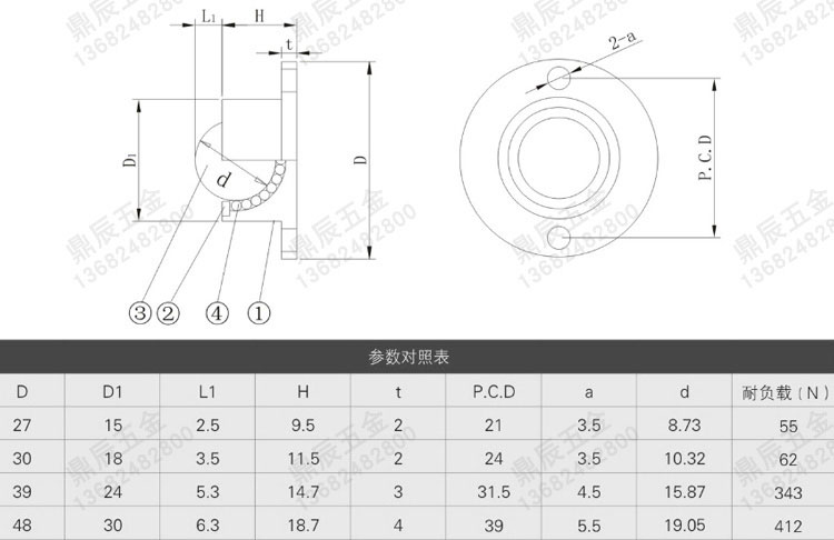 BẢNG THÔNG SỐ MẶT BÍCH GẮN BI NHÚN KIỂU BCHF
