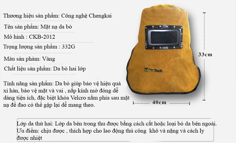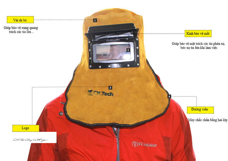 Mũ trùm đầu hàn giá rẻ và chất lượng tốt nhất. Mua được làm từ da bò tự nhiên, bền, chống cháy và chịu nhiệt rất tốt, được sử dụng trong các nhà máy hàn xì, cơ khí.
