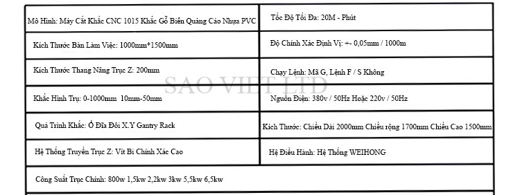 Thông Số Kỹ Thuật Máy Cắt Khắc CNC 1015 Khắc Gỗ Biển Quảng Cáo Nhựa PVC