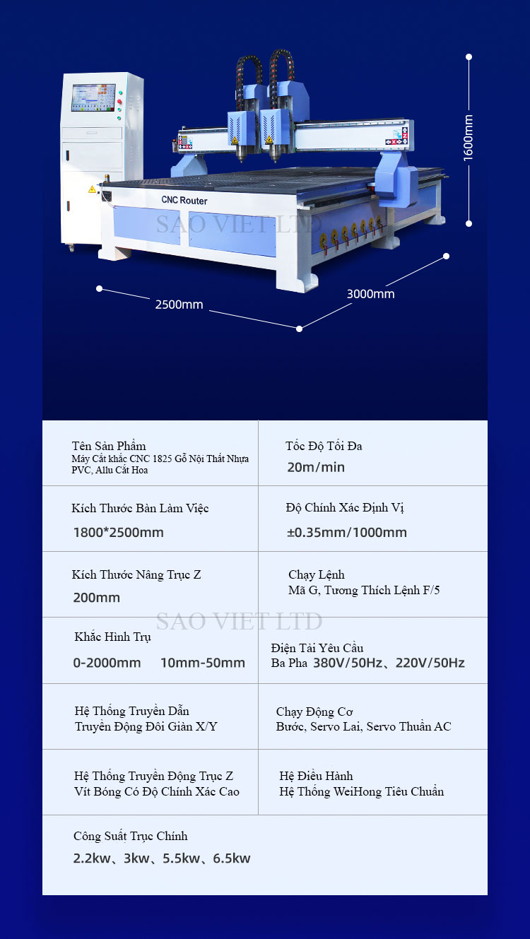 Thông Số Kỹ Thuật Máy Cắt khắc CNC 1825 Gỗ Nội Thất Nhựa PVC, Allu Cắt Hoa