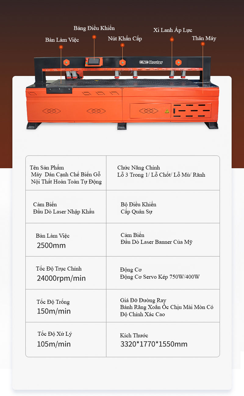 Bảng Thông Số Máy Dán Cạnh Chế Biến Gỗ Nội Thất Hoàn Toàn Tự Động