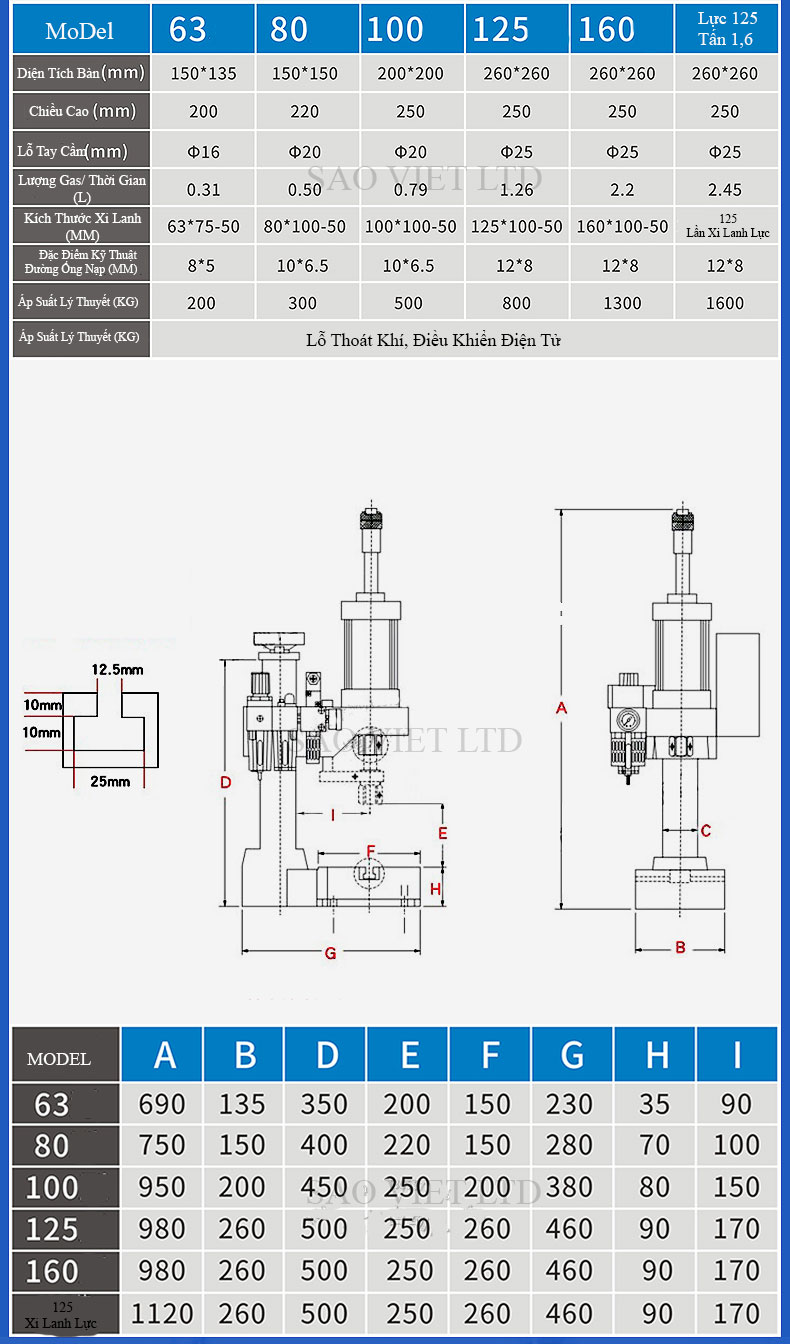 Bảng Thông Số Kỹ Thuật Máy Đột Dập Khí Nén Cột Đơn