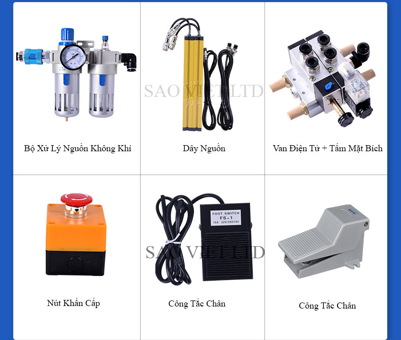 Xi lanh khí nén: Sử dụng xy lanh đôi hoặc đơn, hành trình ổn định, sinh lực ép nhanh và đều.