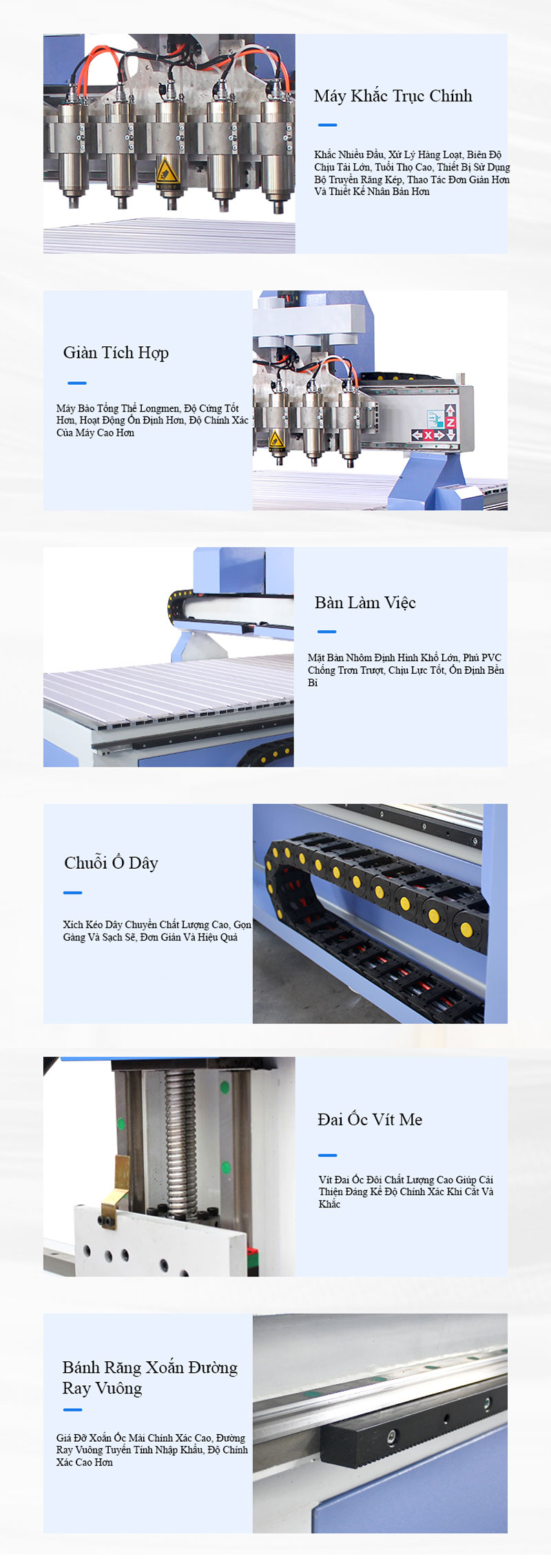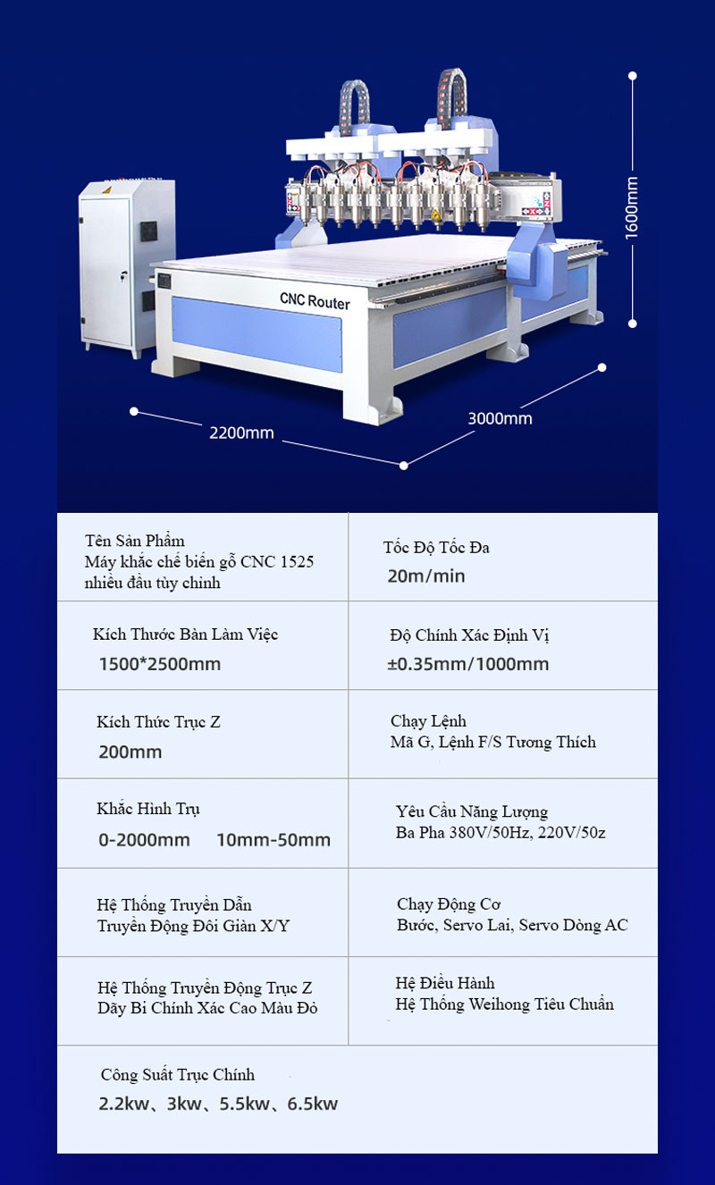 Thông Số Kỹ Thuật Máy khắc chế biến gỗ CNC 1525 nhiều đầu tùy chỉnh