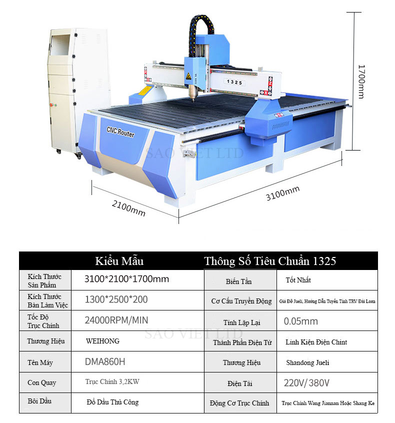 • Máy CNC 1325 là sản phẩm được nhập khẩu trực tiếp về Việt Nam, tuy nhiên lại có giá thành chỉ tương đương với các sản phẩm trong nước nhưng về chất lượng thì vượt trội hơn hẳn. Vì vậy không có lý do gì để khách hàng từ chối một sản phẩm tốt như vậy.