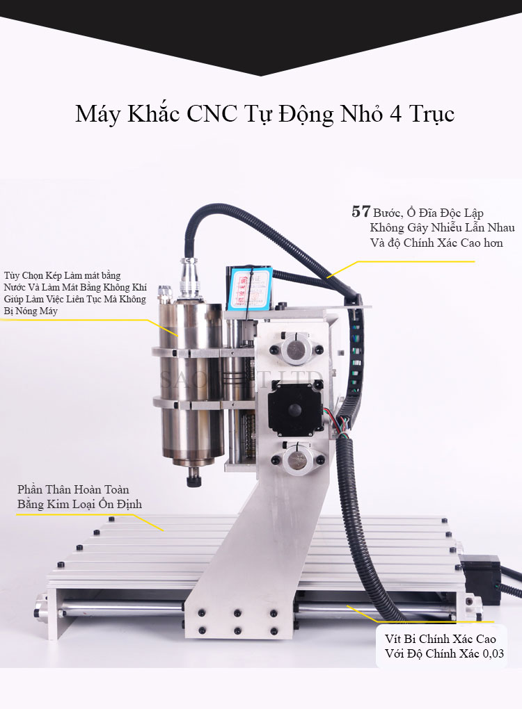 Tên Sản Phẩm: Máy Khắc CNC Tự Động Nhỏ 4 Trục (3020 - 3040)