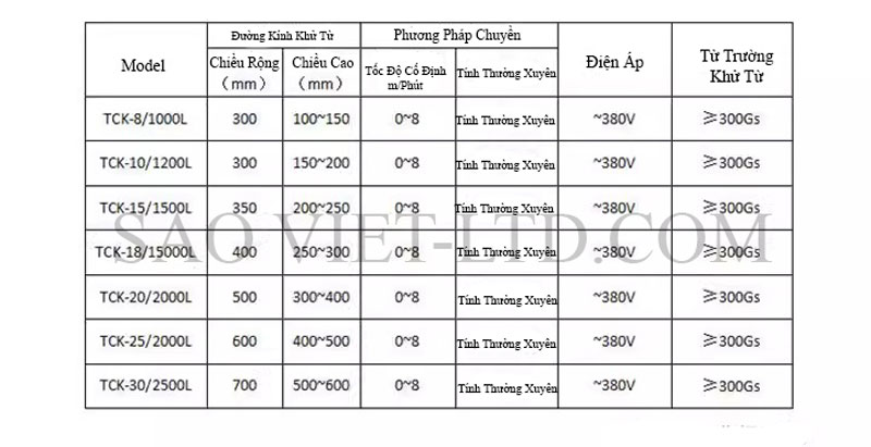 Bảng Thông Số Kỹ Thuật Máy Khử Từ Cho Dây Truyền Tự Động Sản Xuất