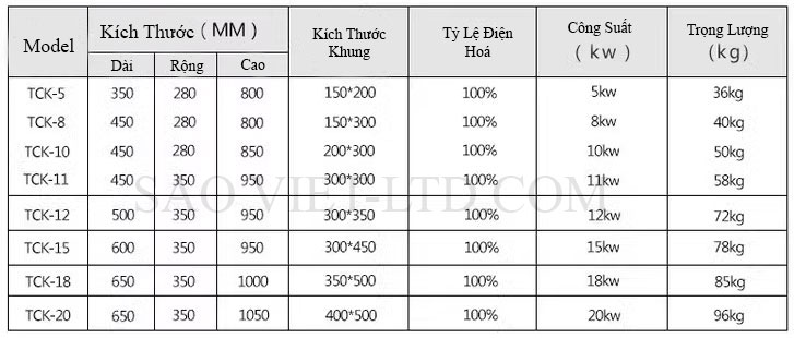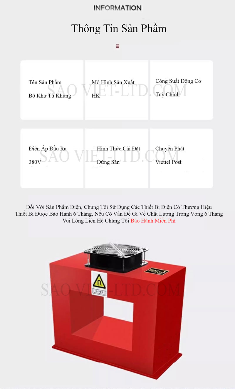 Bảng Thông Số Kỹ Thuật Máy Khử Từ Loại Khung Cho Băng Truyền Sản Xuất