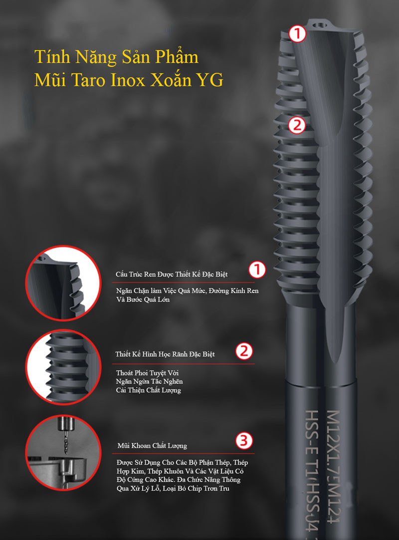 Tính Năng Mũi Taro Inox Xoắn YG