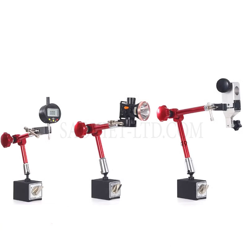 với 3 bậc tự do, khóa cơ ở trục giữa, Chuyên dụng cho những không gian khó định hướng. Thích ứng cho những phép đo biến đổi, vị trí và không gian đo đa chiều. Trụ của đế từ bằng hợp kim nhôm, chống mài mòn, khớp xoay vạn năng. Vít chỉnh mịn, núm xoay dễ cầm nắm và điều chỉnh tinh. Khối từ tính có lực từ mạnh, khóa đóng ngắt từ nhẹ. Núm xoay bằng nhựa cứng hoặc bằng nhôm.