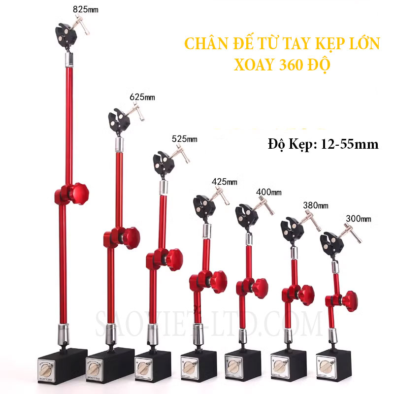 Chân đế nam châm gắn tay gá có chiều cao: 300, 380, 400, 425 525, 625, 725, 825mm