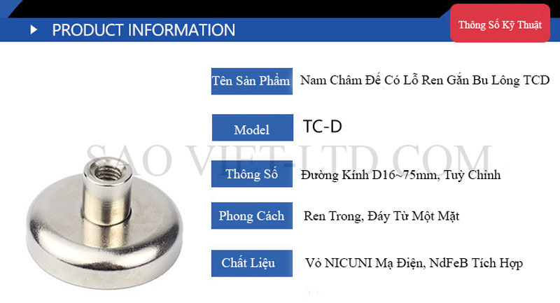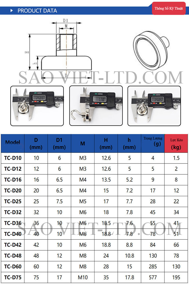 Đường kính đế nam châm: 10, 12, 16, 20, 25, 32, 36, 42, 48, 60, 75