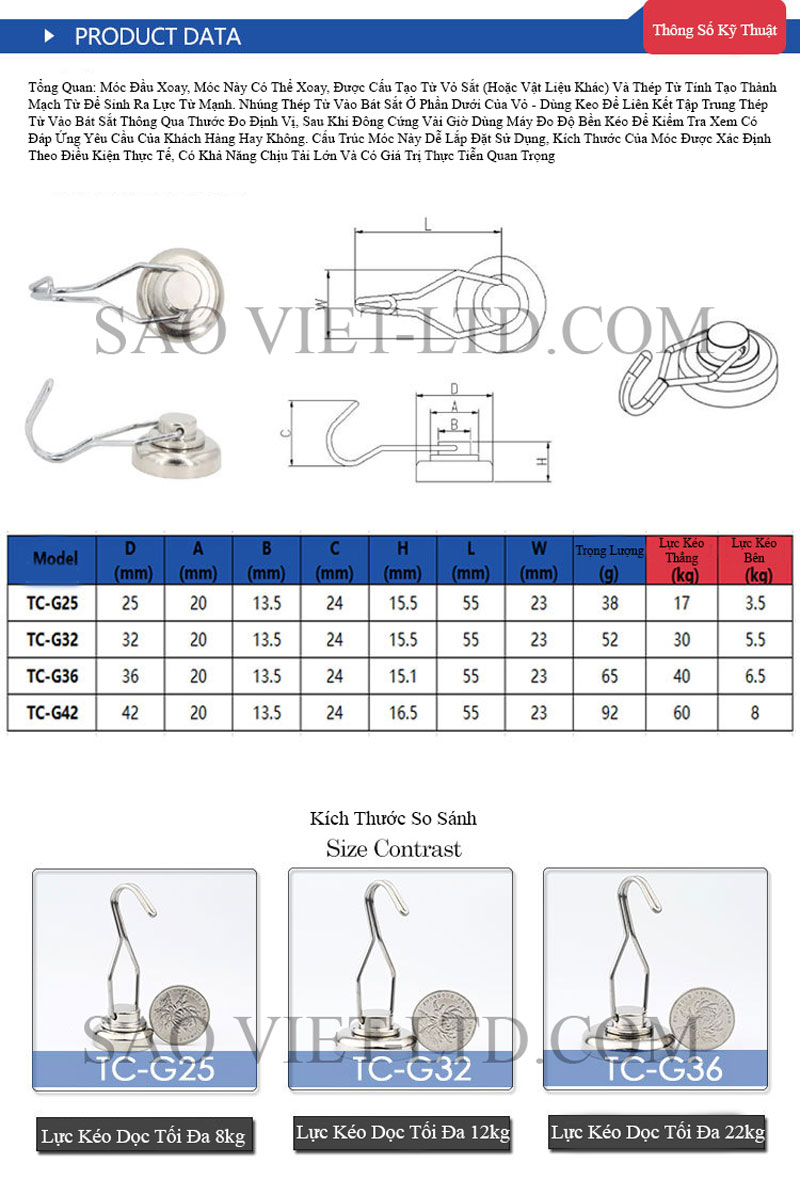 Nam châm móc treo: D20mm, D25mm, D32mm, D36mm, D42mm