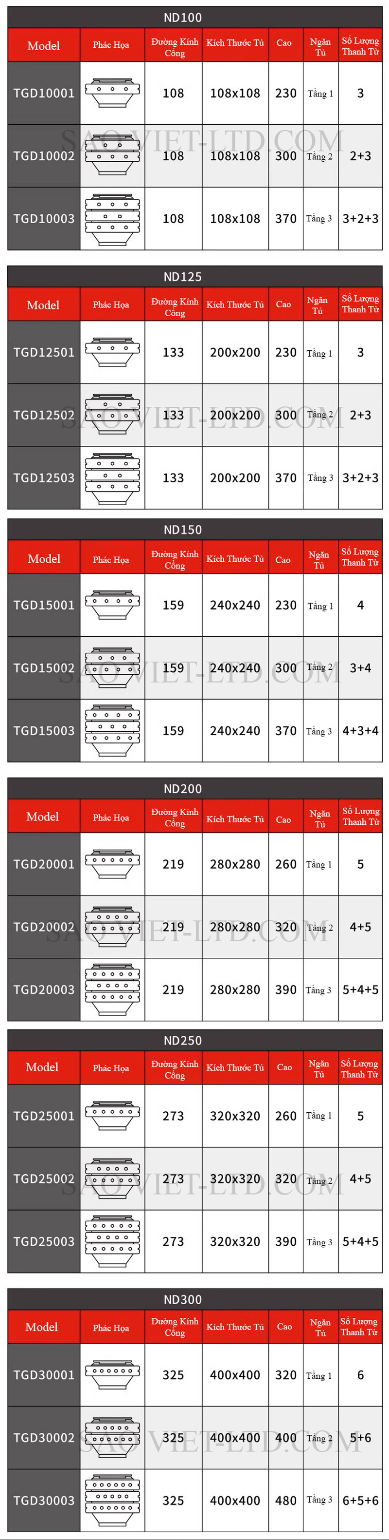 Bảng Thông Số Kỹ Thuật Nam Châm Lọc Tách Sắt Đường Ống
