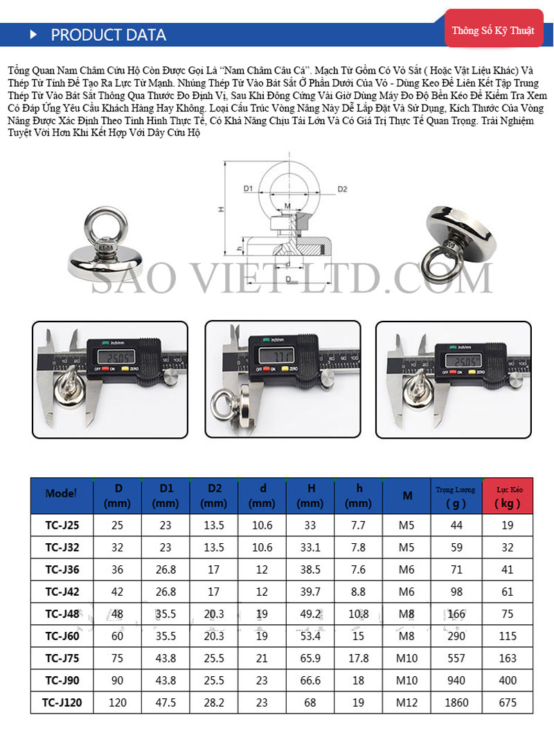 Đường kính đế nam châm TCJ: 16, 20, 25, 32, 36, 42, 48, 55, 60, 67, 75