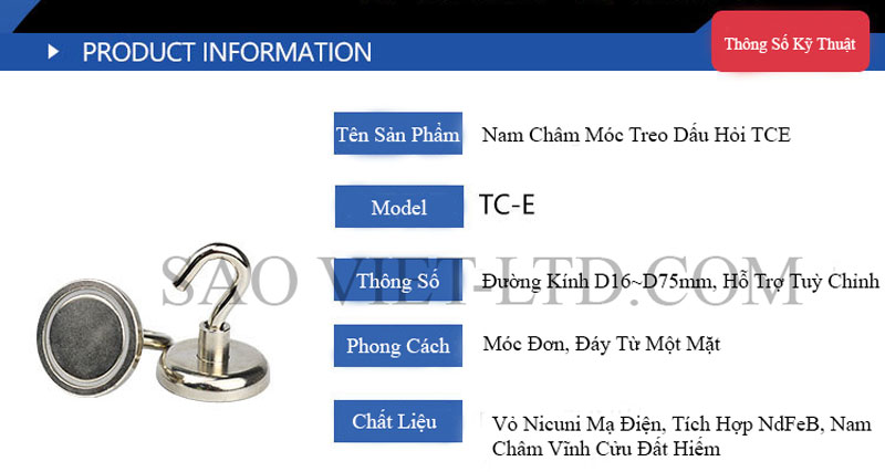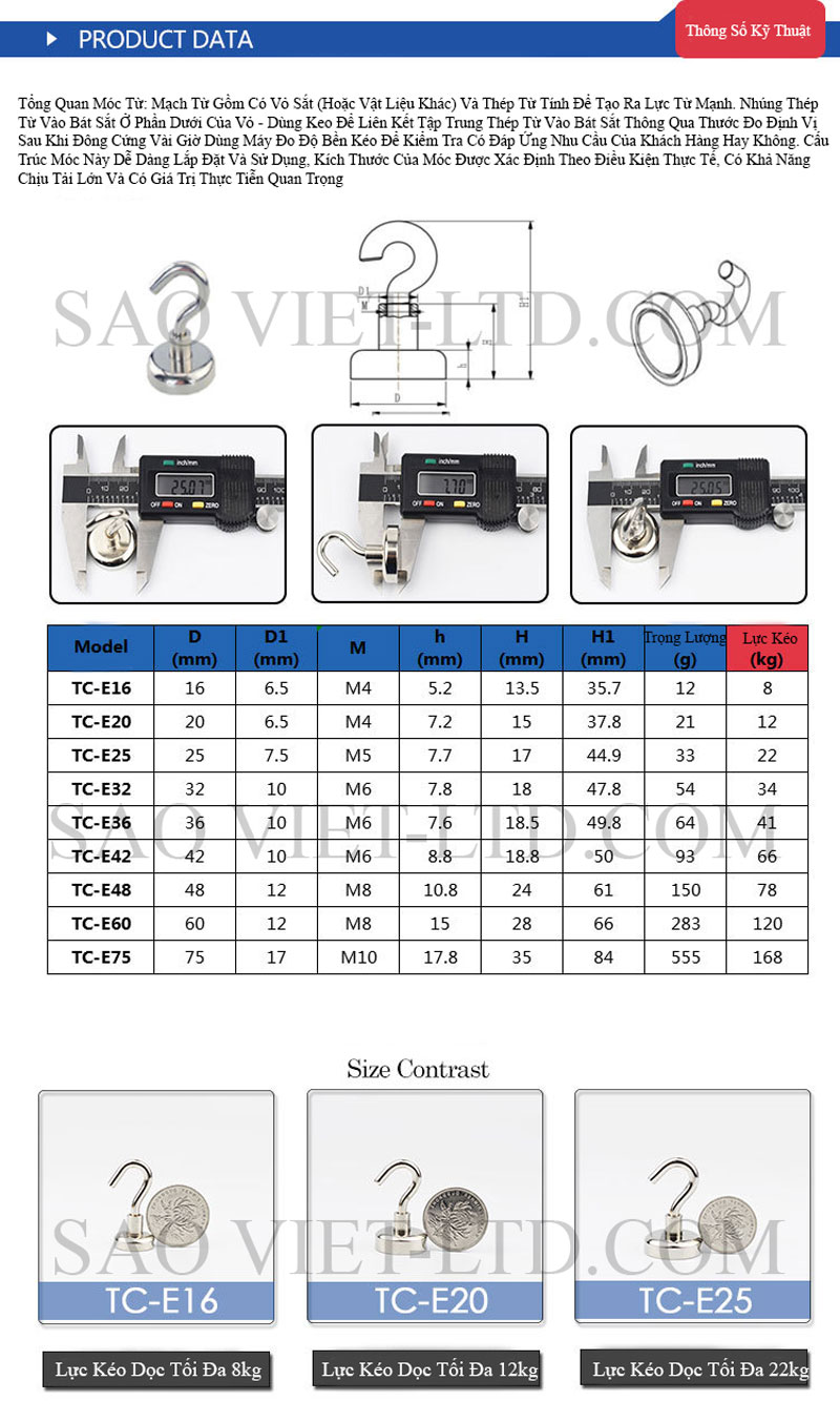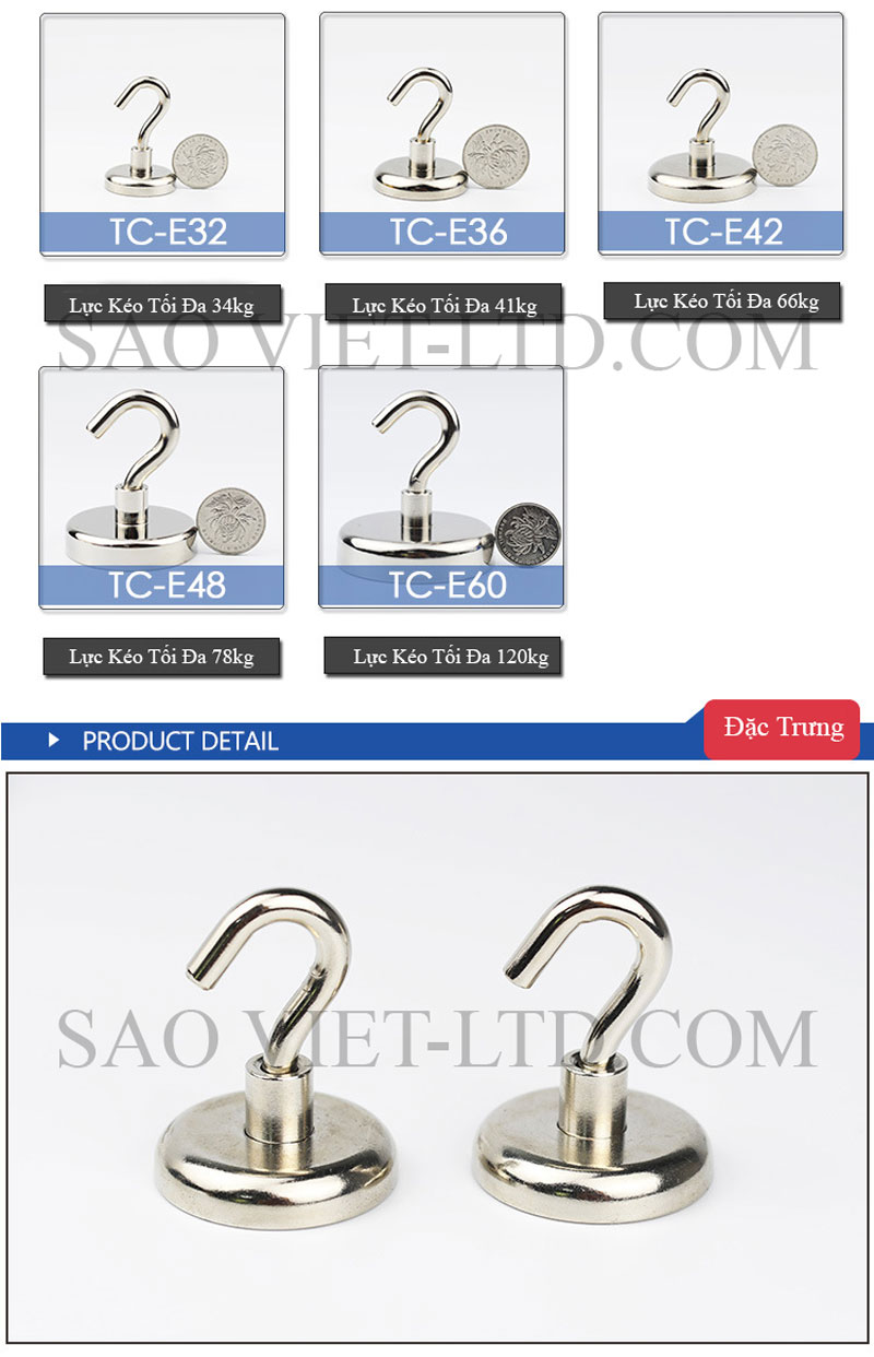 Đường kính đế nam châm: 10, 12, 16, 20, 25, 32, 36, 42, 48, 60, 75