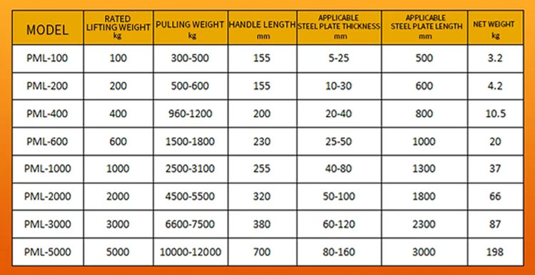 Bảng Thông Số Kỹ Thuật Nam Châm Nâng Tay Gạt PML