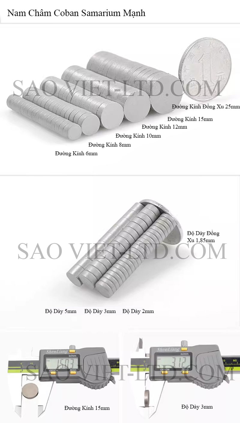 Đường Kính Nam Châm: 2/3/4/5/6/8/10/12/15/16mm