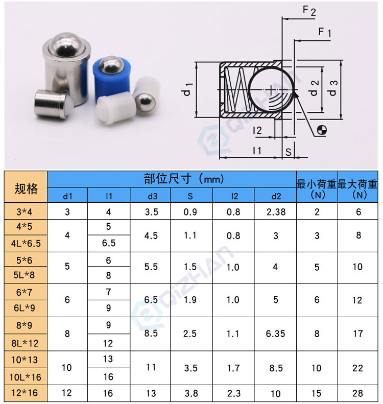 BẢNG THÔNG SỐ NÚT BẤM ĐỊNH INOX ĐẦU GẮN BI TỲ