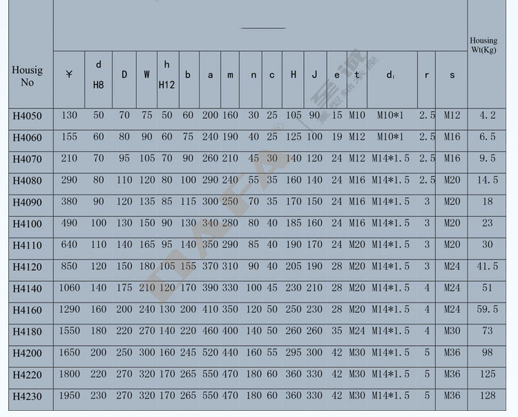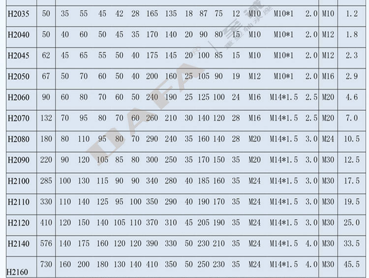 Có nhiều mã và kích thước khác nhau, tham khảo bảng thông số từ mã đầu H200 và H400
