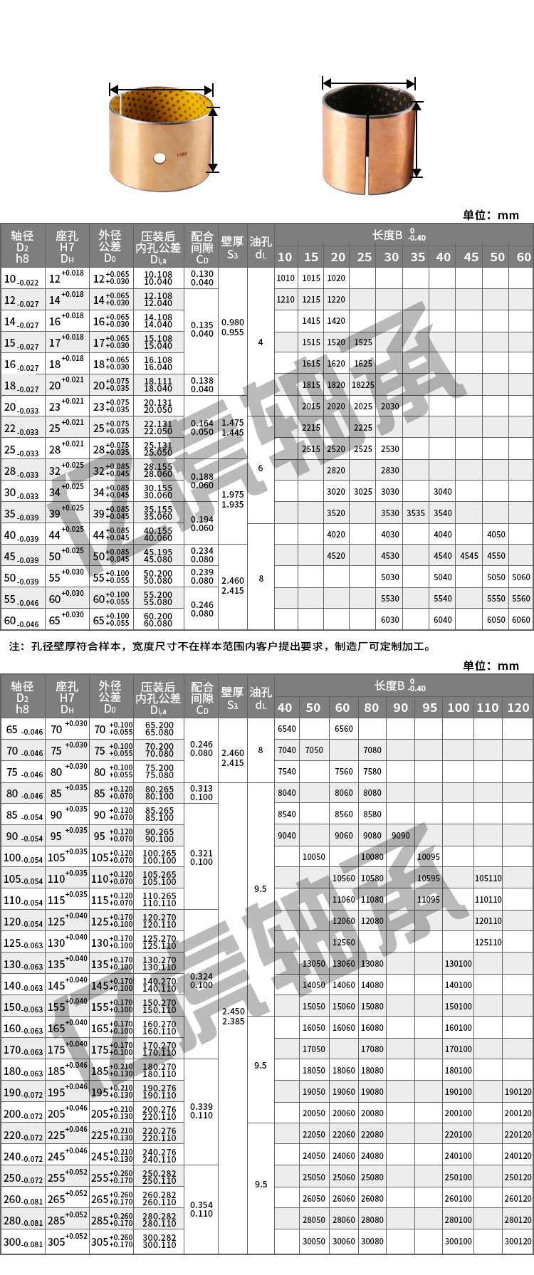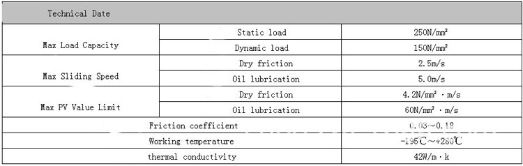 1. Hỗn hợp polyoxymethylene (POM) biến tính và chì có kích thước 0,3 ~ 0,5mm, có khả năng chống mài mòn cao và hệ số ma sát thấp ngay cả trong trường hợp thiếu dầu tức thời. hoặc Trên bề mặt ổ trục thường xuyên bố trí các hố chứa dầu có góc xoắn ốc, khi lắp ráp phải phủ mỡ bôi trơn.