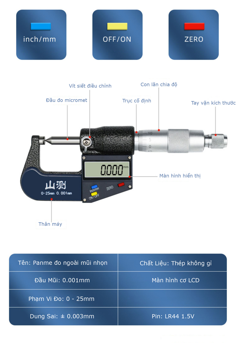 Đặc điêm nổi bật của đầu panme đo ngoài điện tử