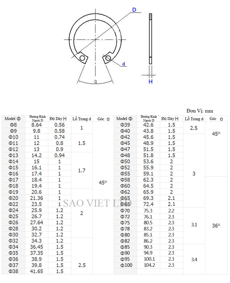 Bảng Thông Số Kỹ Thuật Phe Gài Lỗ Trong Chữ C