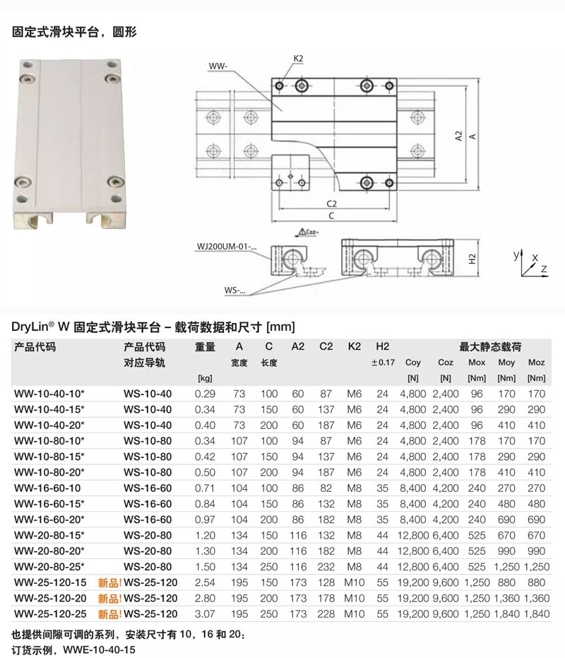 Bảng Thông Số Kỹ Thuật Ray Dẫn Hướng Tuyến Tính Drylin W ( Loại Không Bôi Trơn) WW