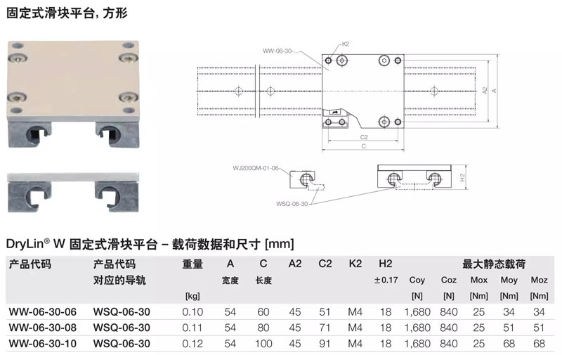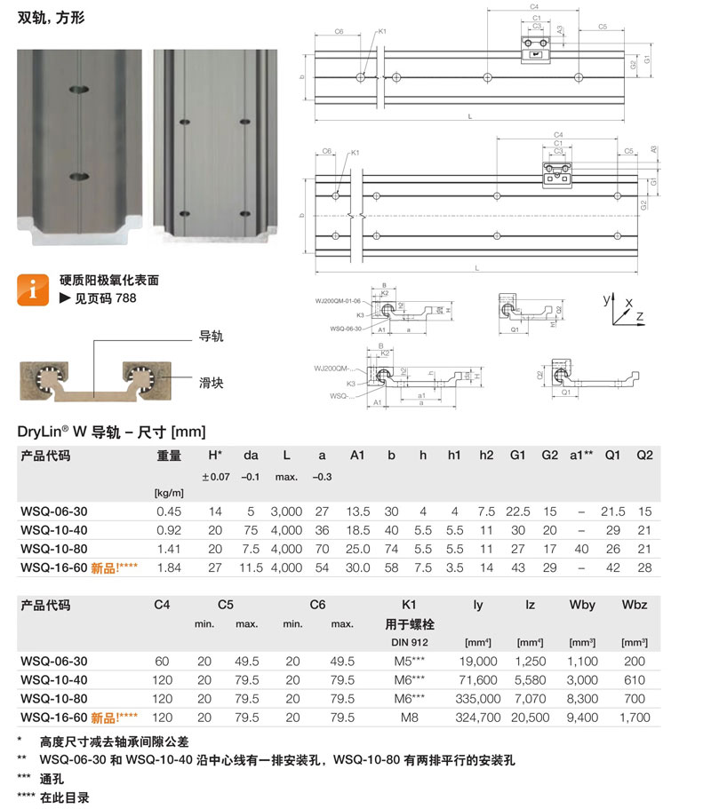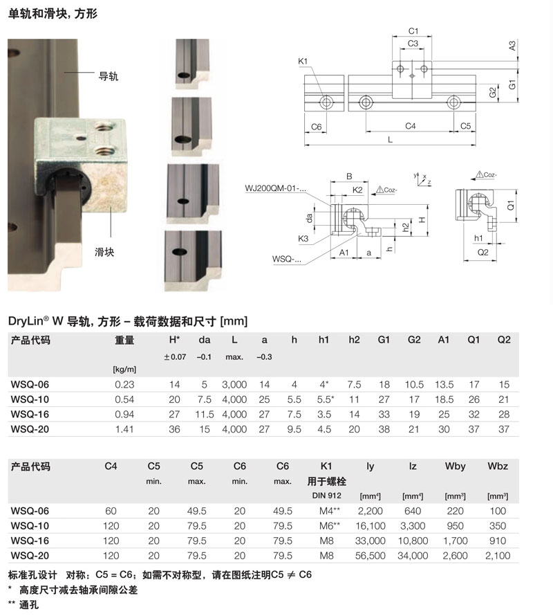 Bảng Thông Số Kỹ Thuật Ray Drylin W Đơn Loại Góc Ray WSQ