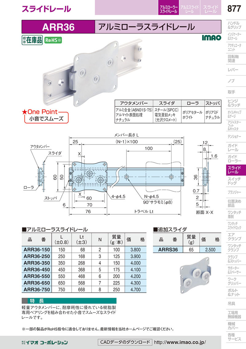 Bảng Thông Số Kỹ Thuật Ray Trượt Con Lăn Nhôm ARR