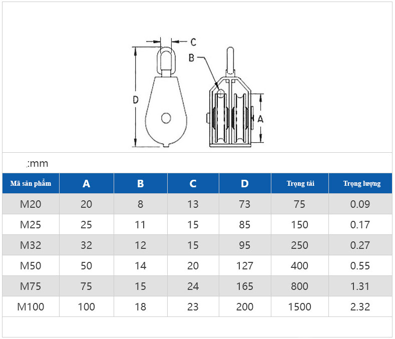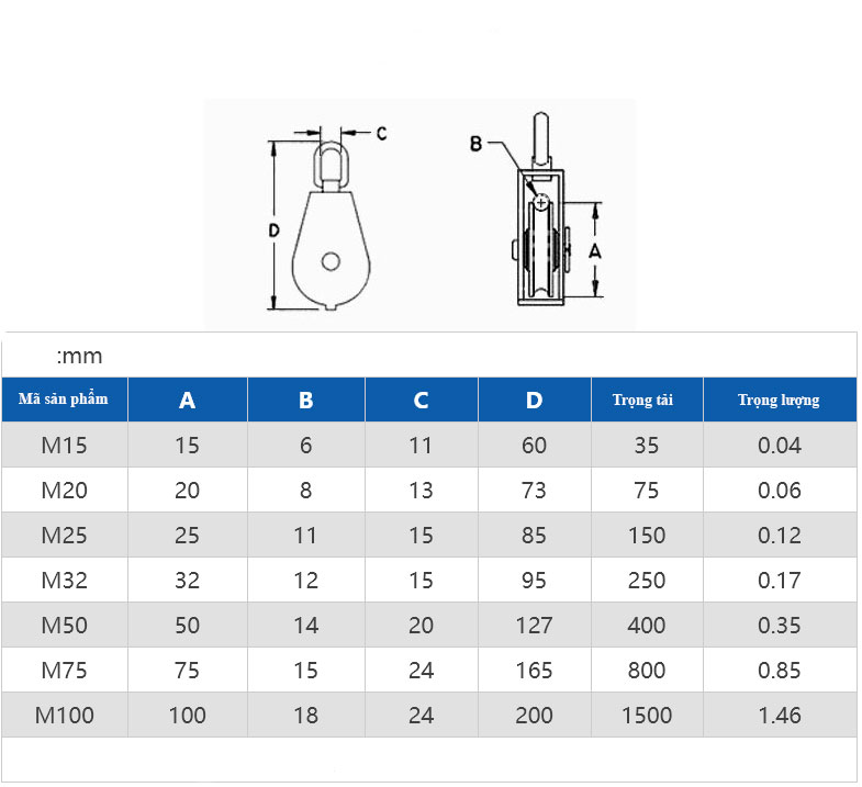 Đường kính ngoài : 125mm, 150mm, 180mm